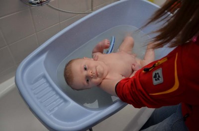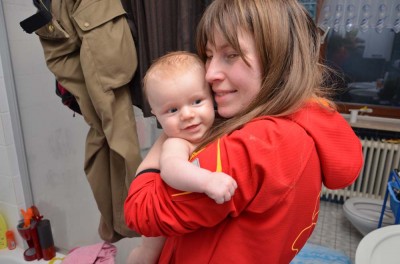 Wie schon seine großen Schwestern ist auch Frederik gern im Tragetuch oder Manduca. Meist schläft der kleine Kerl dann schnell ein und Mama darf sich abschleppen, denn hinsetzen oder stehen bleiben ist natürlich nicht erlaubt.