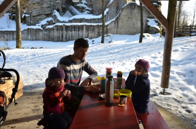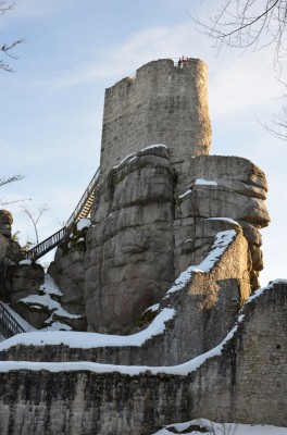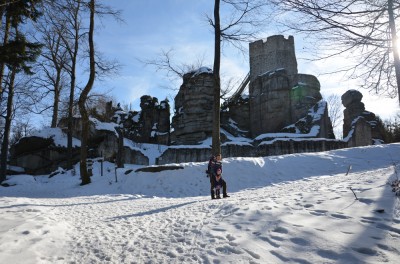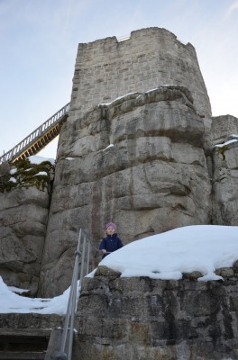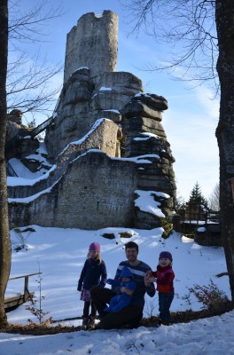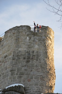 Das herrliche Wetter nutzten wir heute für einen Ausflug zur Burg Weißenstein im Steinwald. Bei herrlichem Wetter erklommen wir den zum Teil recht steilen Weg hoch zur Burg. Noch leicht eingeschneit bot die Burg einen wundervollen Anblick, allerdings musste man beim Besteigen doch sehr aufpassen, um nicht auf dem Eis auszurutschen. Nach einem gemütlichen Picknick erklommen wir dann die alte Ruine, auf deren Turm sich ein herrlicher Ausblick über den Oberpfälzer Wald bot. Einziger Wermutstropfen des Ausflugs waren Jasmins Stiefel, die sich während der Wanderung auflösten und für kalte Füße sorgten. Jasmin hat das natürlich, tapfer wie man sie kennt, locker weggesteckt