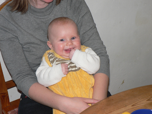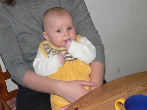 Johanna schien es bei den Dorfhainern gut zu gefallen und sie kaute fröhlich an ihrem Finger herum:
