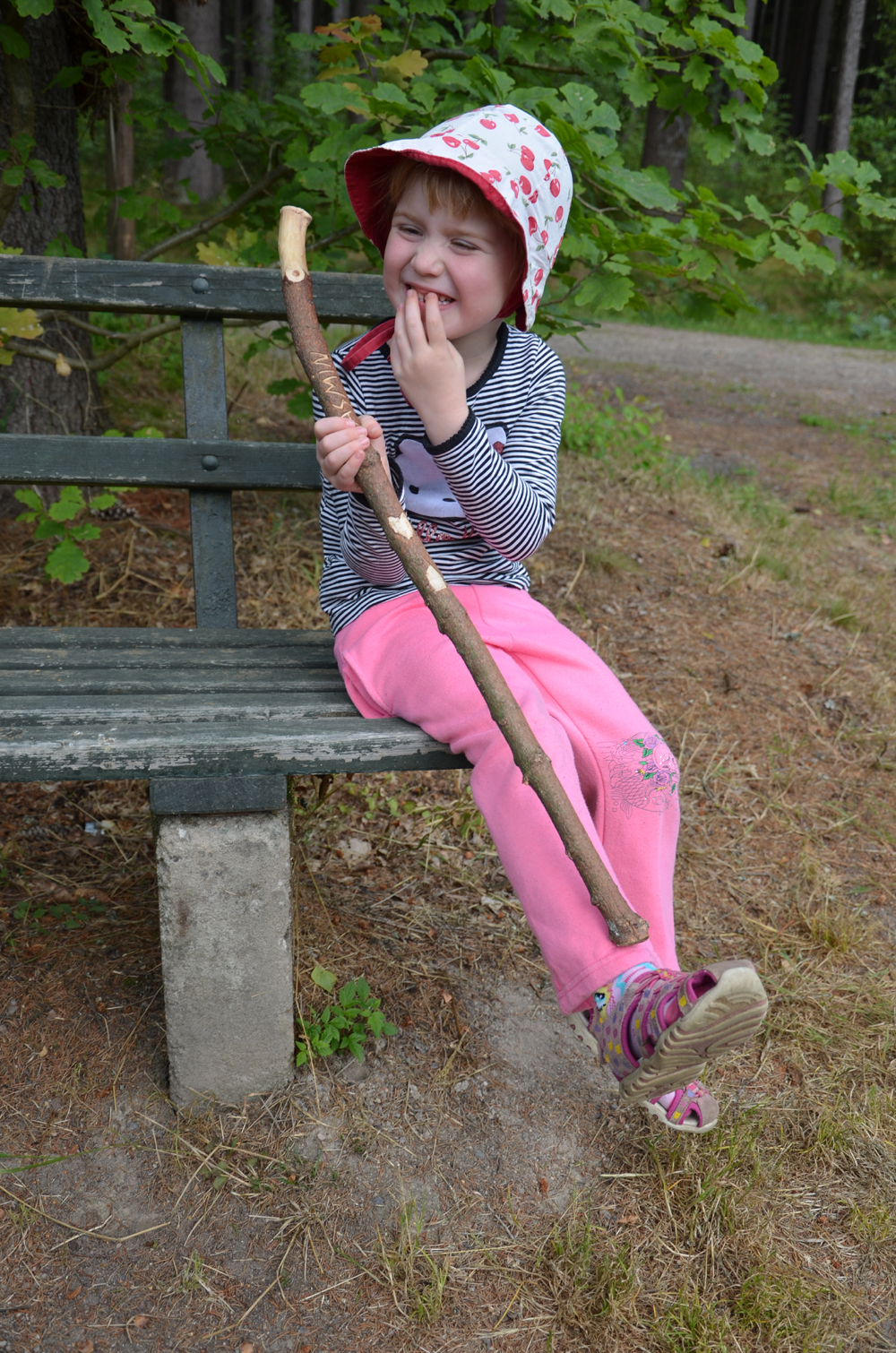 Heute haben wir wieder mal eine kleine Wanderung unternommen. Zusammen mit der mittlerweile erprobten Jasmin samt Wanderstock und der kleinen Passagierin hoch oben erkundeten wir die Gegend um Weiden. Über Stolperwurzelpfade und durchs Biberland führte uns unser Weg über die Autobahnbrücke (inklusive Winken) wieder nach hause zurück.