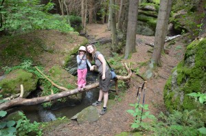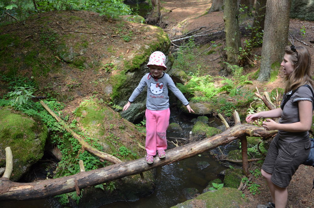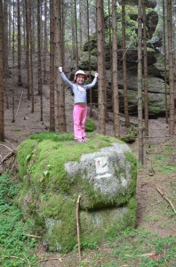 Schon bei der gestrigen Wanderung drängte Jasmin darauf, schon bald wieder mal auf große Wanderschaft zu gehen. Daher sind wir einfach nochmal aufgebrochen und haben die Runde nahe Tirschenreuth, die wir mit Johanna schon einmal gewandert waren, mit Jasmin noch einmal angepackt. Auf die Teufelsküche freute sich Jasmin besonders und posierte dann auf einem “Teufelskochtopf”.