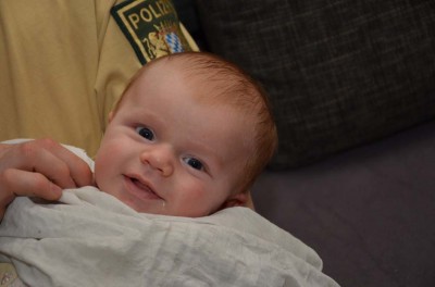 Heute ging es nun bei unserem Kleinsten auch schon mit der Impferei los. Allerdings recht harmlos mit einer Schluckimpfung gegen Rotaviren. Frederik fand das ganze aber gar nicht lecker und schimpfte lauthals (die Kinderärztin meinte, gestillten Kindern sei der Impfstoff zu süß und die würden sich daher öfters beschweren). Befragt nach dem Gewicht, wollte die Ärztin gar nicht glauben, dass Frederik schon so schwer ist, was sich dann aber auf der Waage beim Arzt mit 6150g bestätigte, er hat eben schwere Knochen…