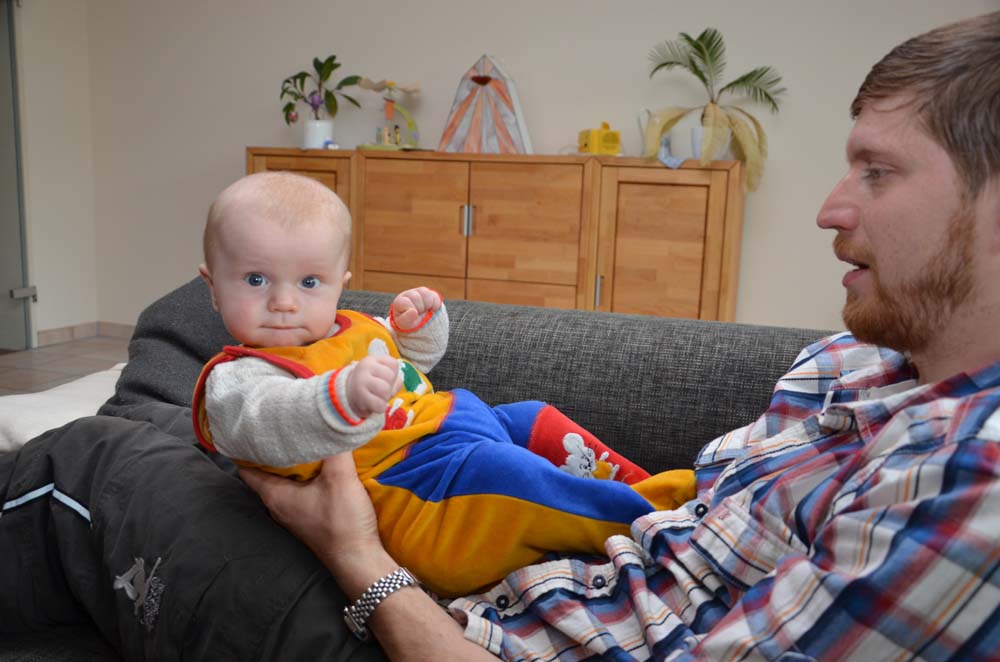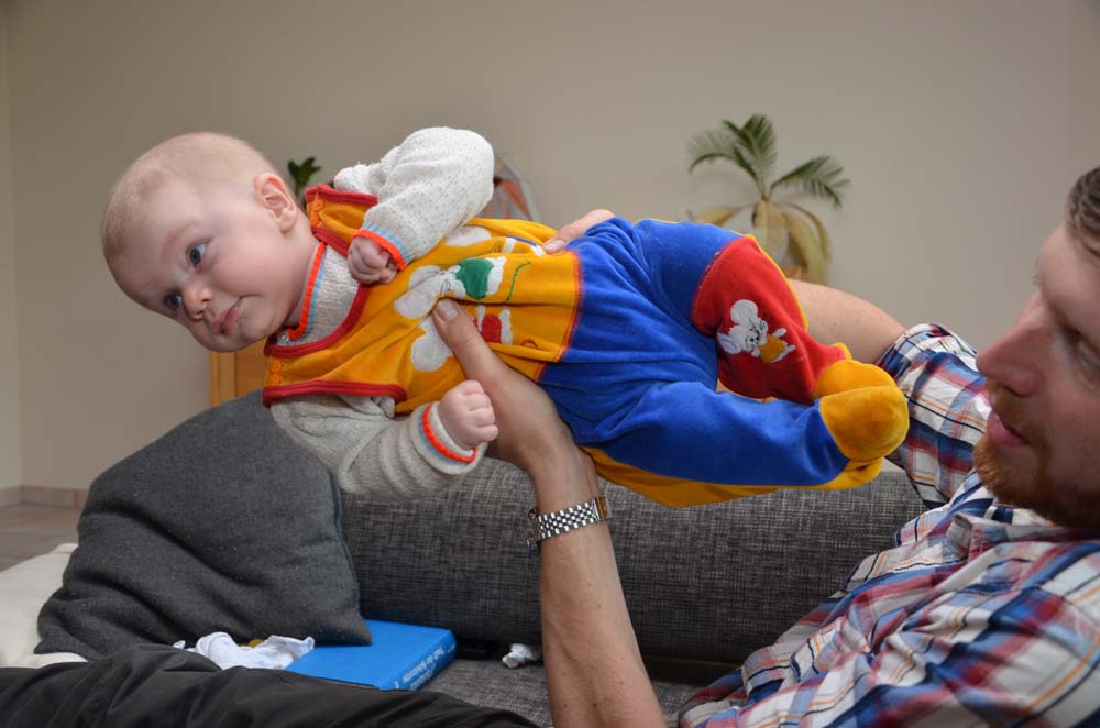 Nachdem Frederik zuletzt beim Kinderarzt etwas schwache Ärmchen zeigte, wurde uns Physiotherapie verordnet. Inzwischen hatten wir unseren zweiten Termin und der Kleine ist schon deutlich fitter geworden. Dafür tun wir zu Hause natürlich auch einiges und trainieren das Kerlchen täglich. Er sieht das ganz entspannt und macht super mit.