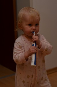 Inzwischen putzt auch Johanna ihre Zähne elektrisch. Zwar gibt sie dem ganzen immer noch die Überschrift “Nana” – verbindet es also eher mit essen, aber das wird schon noch.