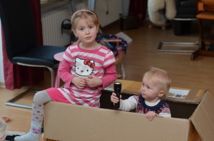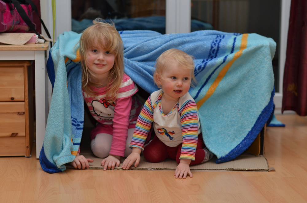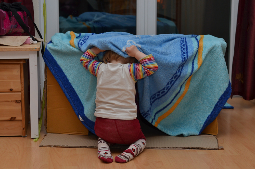 Da sieht man es wieder: die einfachsten Dinge sind oft das beste Spielzeug. Der große Karton stand nicht lange herum, ehe sein riesiges Potential entdeckt wurde. Schnell war eine Höhle geschaffen, die nicht nur den Rest des Tages, sondern wohl auch darüber hinaus der Renner sein wird.