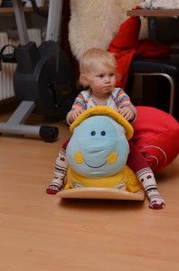 Nach einer längeren Pause wurde heute die Schaukelschnecke aus Minchens Zeiten wieder ausgegraben. Beide Damen haben sich sofort draufgestürzt und sind mit vollem Einsatz geritten.