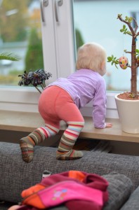 Johanna ist bekanntermaßen ein passionierter Kletterer. Bevorzugtes Terrain sind dabei die beiden Sofas der Wohnung. Aber wehe, man lässt die kleine Bergziege mal kurz aus den Augen… Absolut unwiderstehlich ist derzeit anscheinend unsere Zimmerpflanze mit den Seramiskügelchen. Die lassen sich prima herauspuhlen und dann im Zimmer verteilen. Heute mussten wir nun endlich gegensteuern und die Pflanzenanordnung verändern. Pflanzen mit Erde lassen sie völlig kalt…