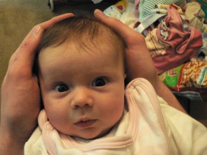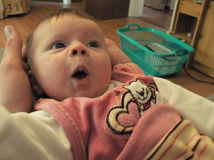 Inzwischen schaut Jasmin schon ganz wach in die Welt und guckt einen richtig an!