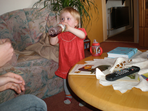 Jasmin glänzt derzeit nicht gerade durch ausgeprägten Mut. Ihr extra für Angst erfundenes Wort “Aiiiinnn” kommt somit ständig zum Einsatz. Hier ist eine blutrünstige Möwe Anlass einer klitzekleinen Panik. Es reichen aber auch schon die Bilder von allen möglichen Tieren in Büchern – beim Löwen vielleicht noch nachvollziehbar. Aber bei Schnecke, Hamster und in extremen Fällen sogar bei Löwenzahn… ?! Naja, gibt sich sicher auch wieder.