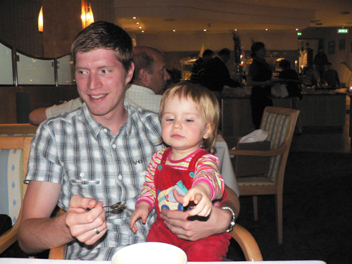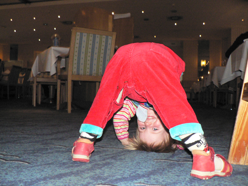 Hier nur eines von vielen Beispielen, was Jasmin angestellt hat, wenn sie fertig gegessen hatte und sie nichts mehr im Stühlchen hielt, die Ellies aber noch ewig rumschlemmen mussten.