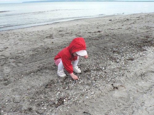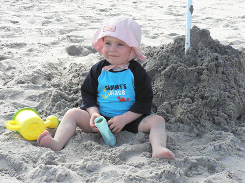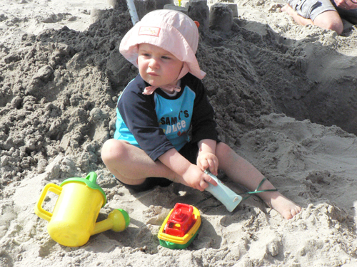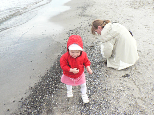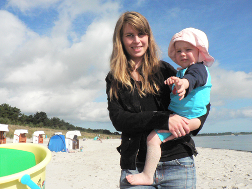 Zum ersten mal am Meer, da war natürlich reichlich buddeln angesagt. Eimer und Schaufel – mehr brauchte Jasmin eigentlich nicht zum glücklich sein. Dank des guten Wetters konnten wir auch jeden Tag eine ganze – Weile am Meer zubringen. Wie man sieht, hat sich die kleine auch hin und wieder ins Wasser getraut. Allerdings nur bis zu den Knien. Zusammen mit Mama wurden dann noch paar schöne Muscheln und Steine gesammelt.