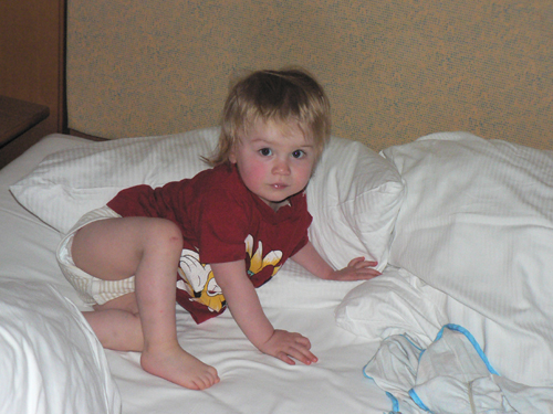 Nicht nur bei schlechtem Wetter, sondern eigentlich bei jeder Gelegenheit hiefte sich unsere Grazie in elterliche Bett und tobte mit voller Begeisterung.