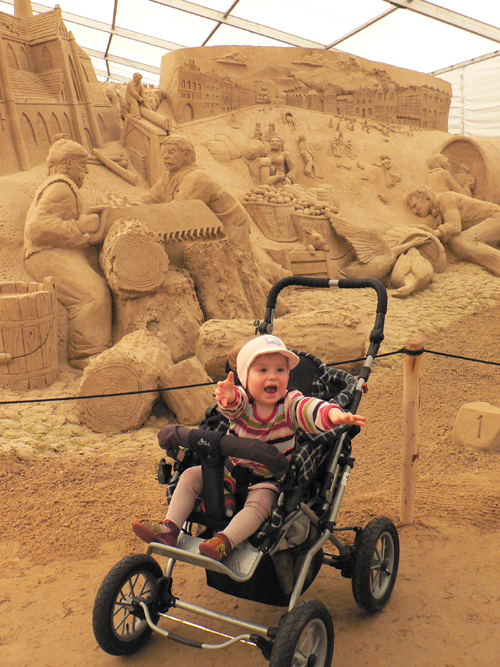Auf Rügen war während unseres Urlaubs auch ein Sandskulpturenausstellung zu bewundern. Auch wenn Minchen höchstens so begeistert war, wie auf jedem anderen Spaziergang auch, war es doch beeindruckend zu sehen, was man mit Sand, Wasser und ein bisschen Geduld so alles anstellen kann. Minchens Werke am Strand konnten da nicht ganz mithalten.