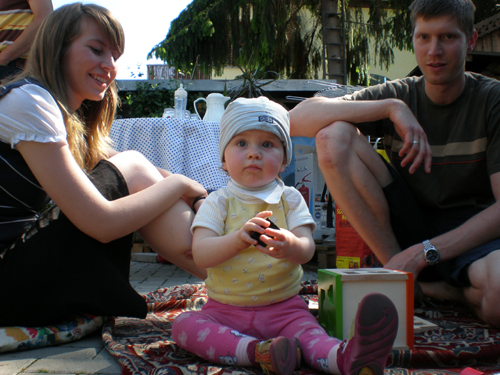 Beim Grillfest bei der Zwickauer Oma haben sich alle eingefunden. Minchen hats gefallen.