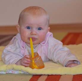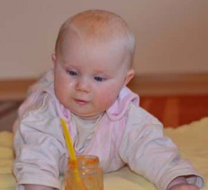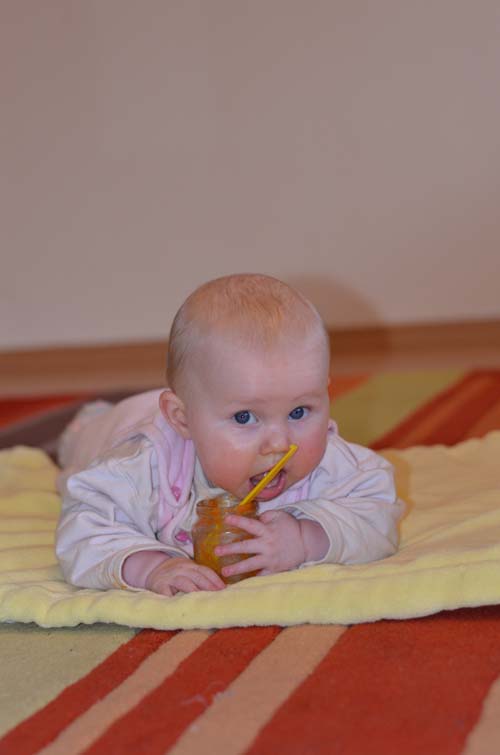 Heute hat Johanna zum ersten mal ein ganzes Gläschen Möhrenbrei