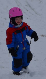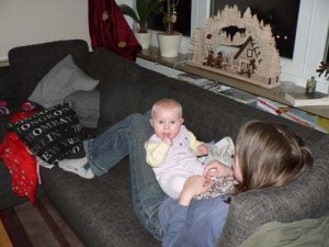 In schönster Winterlandschaft ergab sich auch der eine oder andere Spaziergang, Johanna natürlich gut verpackt im Sack, während Jasmin lieber zu Hause mit der Oma spielte.