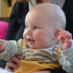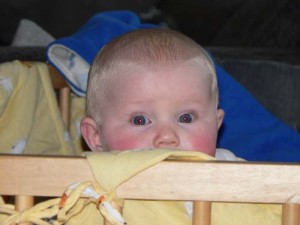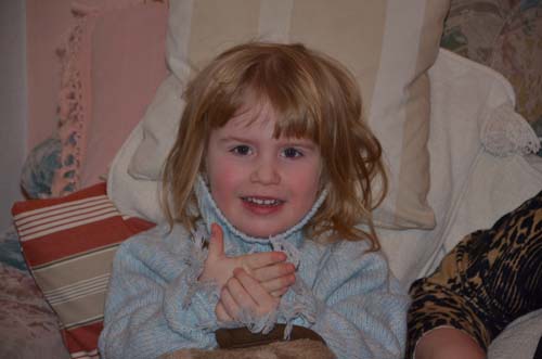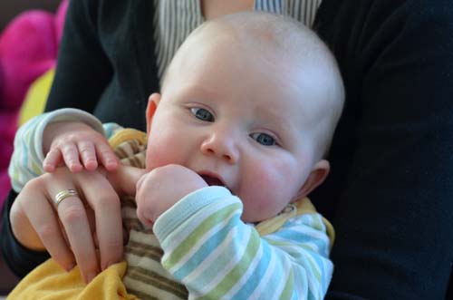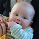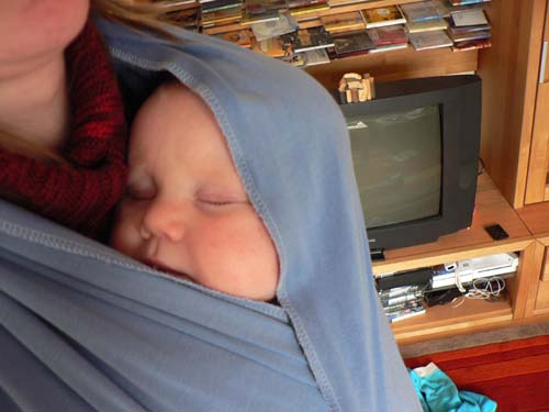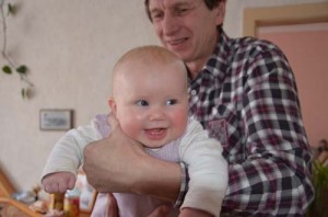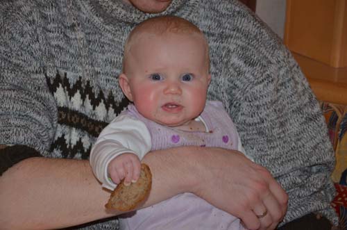Auf dem Weg zum Mülsener Opa ist Johanna dann von den Strapazen des Tages gebeutelt eingeschlafen, war danach aber wieder bester Laune und kaute vergnügt an Mamas Hand herum.