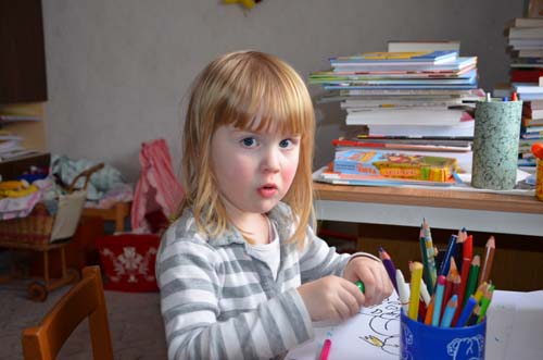 Auch das Zerlegen einer Brotscheibe bereitete ihr großes Vergnügen.
