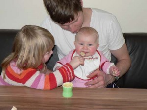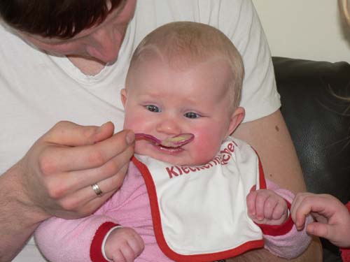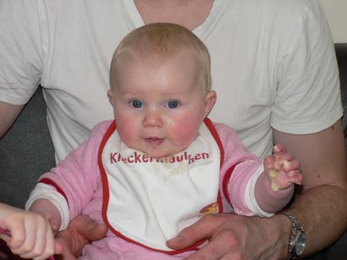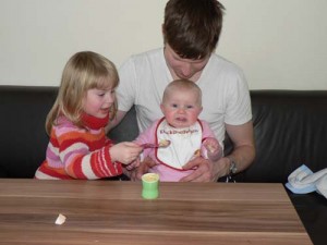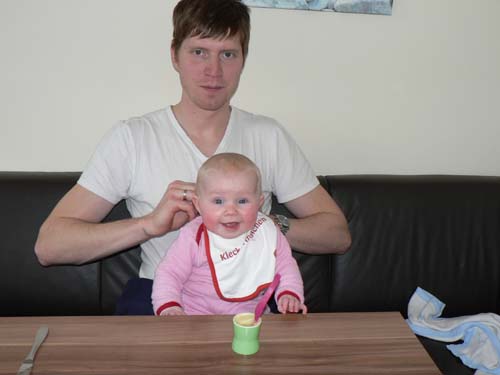 Nun ist es soweit, Johanna bekommt ihren ersten Brei! Einen schmackhaften Pastinakenbamsch! Auch Jasmin ist eiftig dabei und ließ es sich nicht nehmen, dem Schwesterchen einen Löffel Brei in den Mund zu stopfen. Die Begeisterung hielt sich jedoch in Grenzen, sodass wir bei ausbleibenden Erfolgen wohl doch Möhrchen probieren müssen.