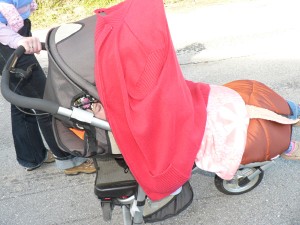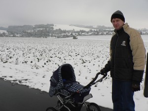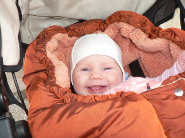 Nachdem wir bei grauem Regenwetter im Urlaubsdomizil angekommen waren, präsentierte sich der nächste Tag in strahlendem Sonnenschein. Das musste natürlich für einen längeren Spaziergang genutzt werden, welchen Jasmin vor Erschöpfung (oder Lauffaulheit?) im Kinderwagen beendete.