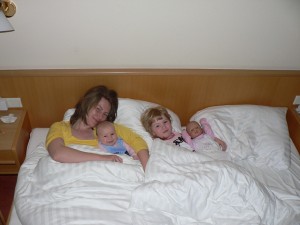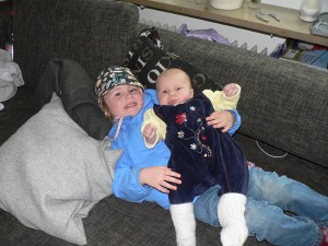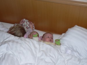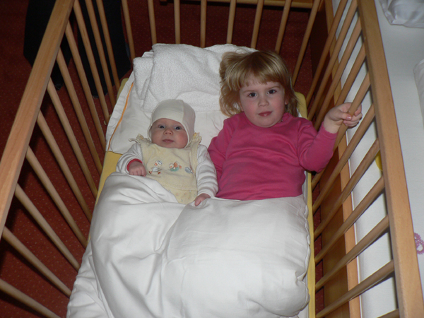Minchen und Johanna verstehen sich nach wie vor sehr gut (mindestens einmal am Tag versichert Minchen Johanna, dass sie sie lieb hat, sogar lieber als die Puppe. Johanna muss dann ihrerseits, vertreten durch Mamas Stimme, ihre Zuneigung bekunden). Entsprechend teilt man sich auch schon mal das Bett, wenn auch nur für Fotozwecke.