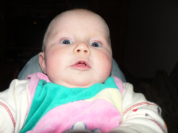 Als kleines neugieriges Ding will Johanna immer alles mitbekommen. Um auch alles einsehen zu können, versucht sie immer öfters, sich zum Sitzen hochzuziehen (meist unter angestrengtem Ächzen und Stöhnen). Besonders interessiert ist sie dabei an ihrem großen Schwesterchen.