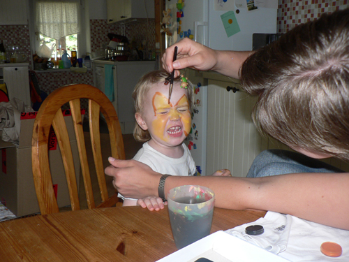 Heute stand Kinderbemalung auf dem Programm. Nachdem Janka auch für so etwas die passende Ausrüstung parat hat, konnte Emmas Wunsch schnell in die Tat umgesetzt werden. Die Fee entzog sich jedoch dem Fotografen, sodass am Ende nur der kleine Pirat und unser kleiner Schmetterling eingefangen werden konnten. Wenn sich alle Schmetterlinge so benehmen würden, wie unserer hier auf dem letzten Bild, wäre auch Mamas Phobie erklärbar…