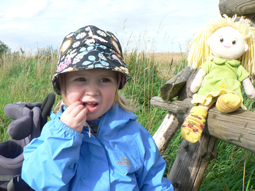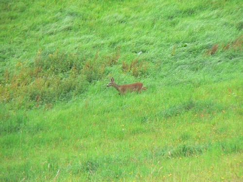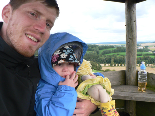 Heute sind wir zu einer kleinen Wanderung zum “Hoche-titz” aufgebrochen. Jasmin hatte im Tragerucksack den gewohnt besten Platz. Kaum hatten wir es uns gemütlich gemacht und die Verpflegung aufgeteilt, sprang uns auch schon ein Reh vor die Linse. Minchen klang dabei, als wären wir nicht das letzte Mal hier gewesen…