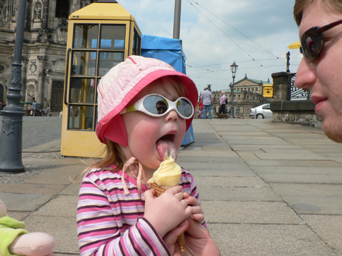 Beim Flanieren durch die Tourimeile Dresdens von der Frauenkirche zum Elbufer durfte bei dem schönen Wetter ein ordentliches Eis natürlich nicht fehlen.