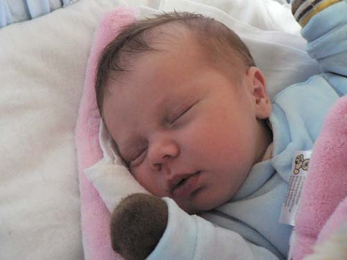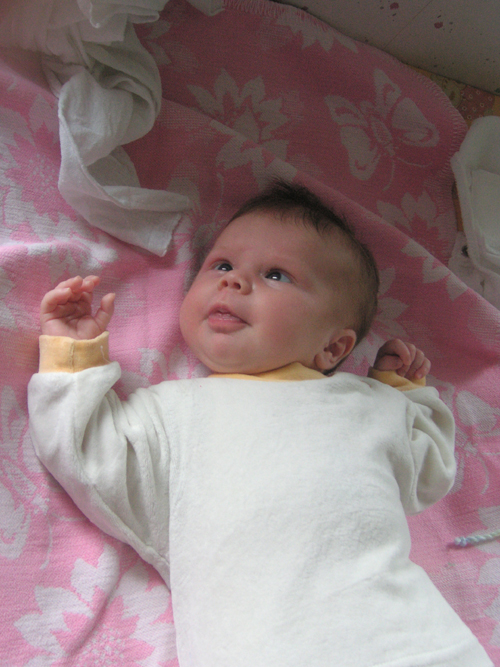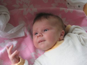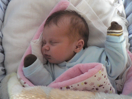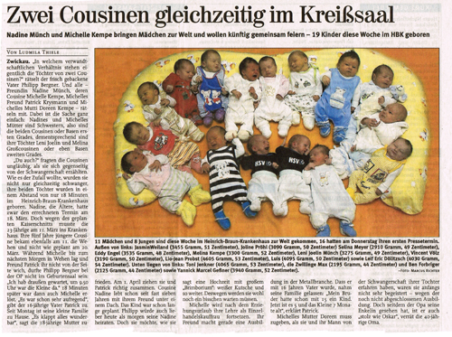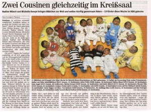 Jasmins erste Tage daheim verlaufen ziemlich gut. Unsere kleine Maus schläft unheimlich viel und auch lang (“Wenn sie lännger schläft, müsst ihr sie aber wecken”, sagte die Hebamme…) und erfreut alle mit ihren Reizen. Ihr Auftritt in der Zeitung war leider etwas verkorkst, weil bei der Namensauflistung ein Dreher drin war. Auf dem Bild ist sie die zweite von links.
