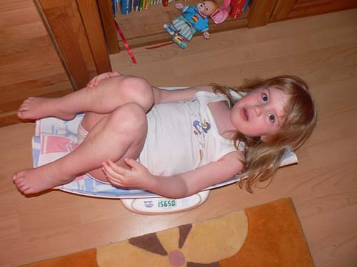 In dem Alter kann man ja durchaus noch offen über sein Gewicht sprechen, bzw. es sogar im Internet veröffentlichen. Vorangegangen war eigentlich eine Johanna-Wiegung. Die brachte übrigens -für ihre Verhältnisse stattliche- 4 kg auf die Waage und damit nur etwas mehr als ein Viertel ihrer großen Schwester…