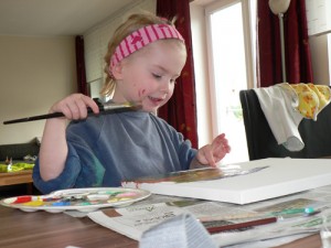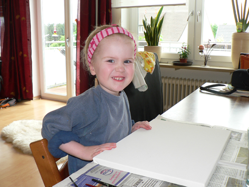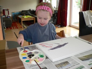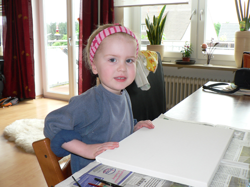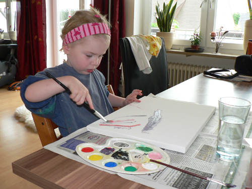 Während Papa wieder in Heilsbronn weilte, lebten die daheim gebliebenen Damen wieder ihre künstlerische Ader aus. Heute ging es mit Pinsel und Wasserfarben ans Werk.