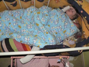 Beim allabendlichen “Babewatching” fanden wir Jasmin in dieser eher unbequem anmutenden Schlafposition vor:
