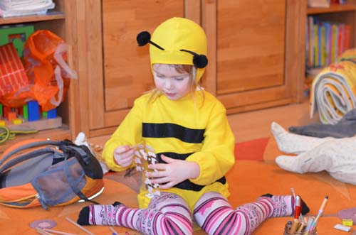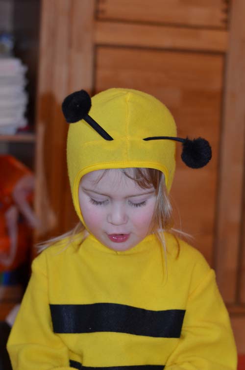 … Mienchen summ herum. Obwohl das diesjährige Faschingsthema im Kindergarten “Zirkus” war, bestand Jasmin darauf, wieder ihr Bienenkostüm vom Vorjahr anzuziehen, das zum Glück auch noch passte. Und so eine Biene kann sich ja auch mal in einen Zirkus verirren!