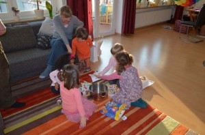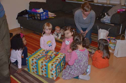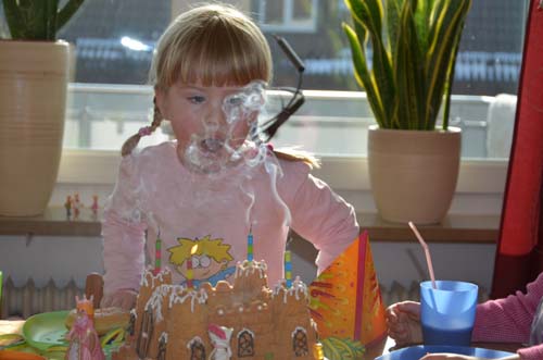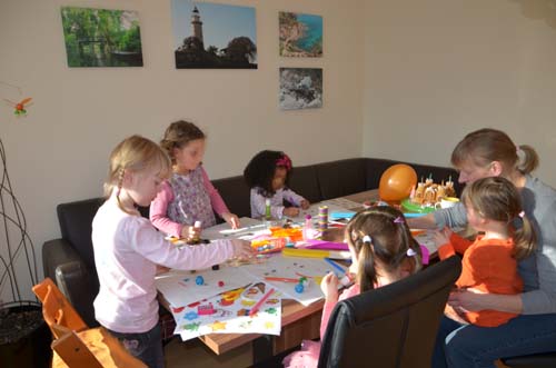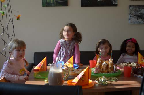 Nun endlich ist der heiß ersehnte (und von Mama und Papa auch etwas gefürchtete) Tag des ersten Kindergeburtstags von Jasmin da. Von den geladenen 6 Gästen erschienen dann immerhin noch vier, nachdem einer schon zu einer anderen Feier geladen war und das fünfte Mädchen im Bunde krankheitsbedingt leider kurzfristig heute früh noch absagte. Das schmälerte aber den Trubel keineswegs.