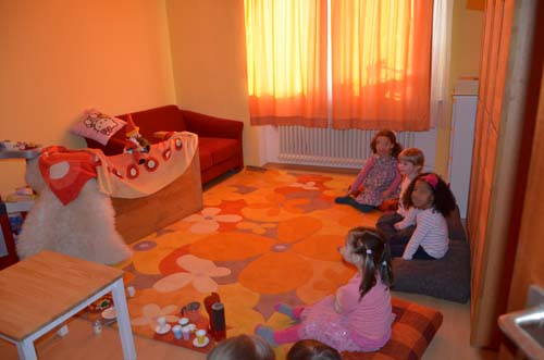 Nach einem weiteren kurzen Spiel (Bilder raten, mit anfangs verdeckten und dann immer mehr sichtbar werdenden Gegenständen), ging es dann ans Abendessen (Nudeln mit Tomatensauce):