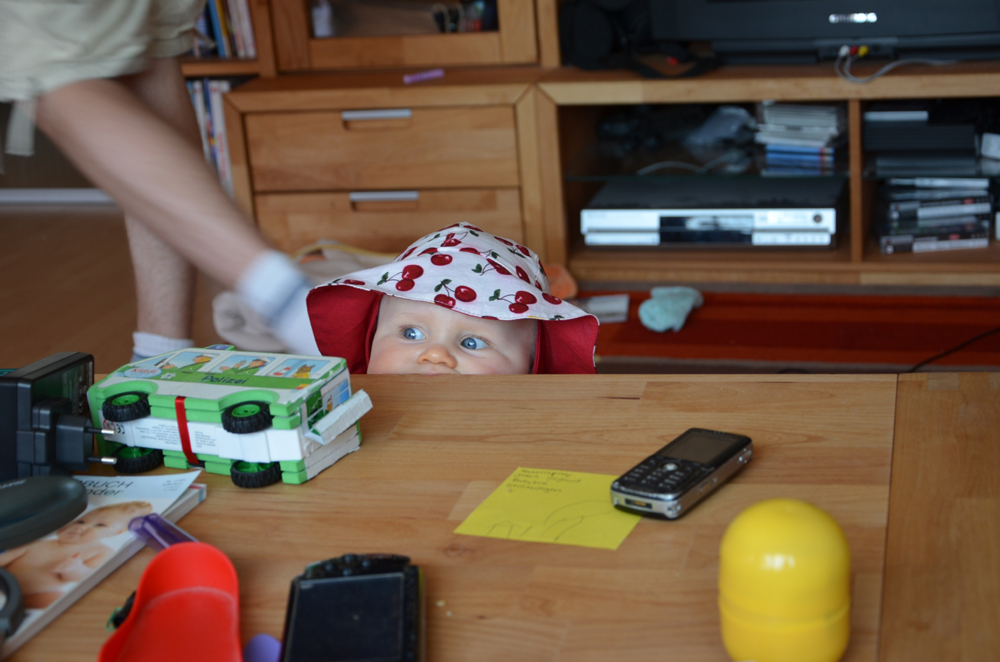 …illert Johanna hier ganz vorwitzig. Man muss nun aber ständig hinterher sein, da sie sich an allen möglichen und unmöglichen Dingen hochzuziehen versucht, aber leider öfters mal das Gleichgewicht verliert.