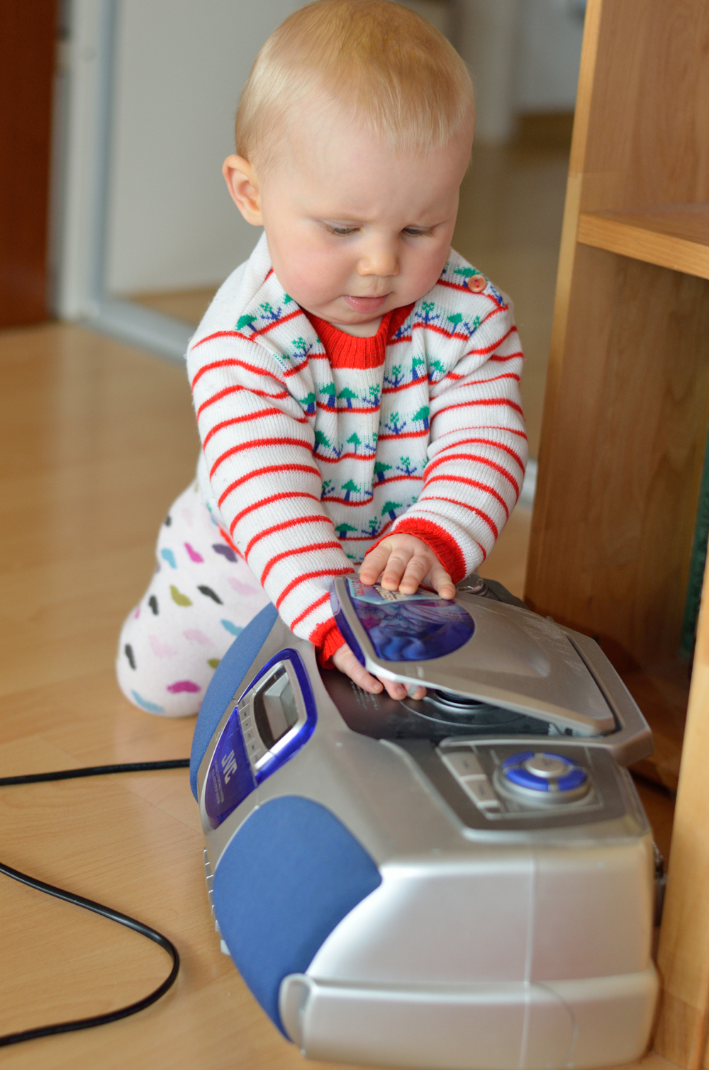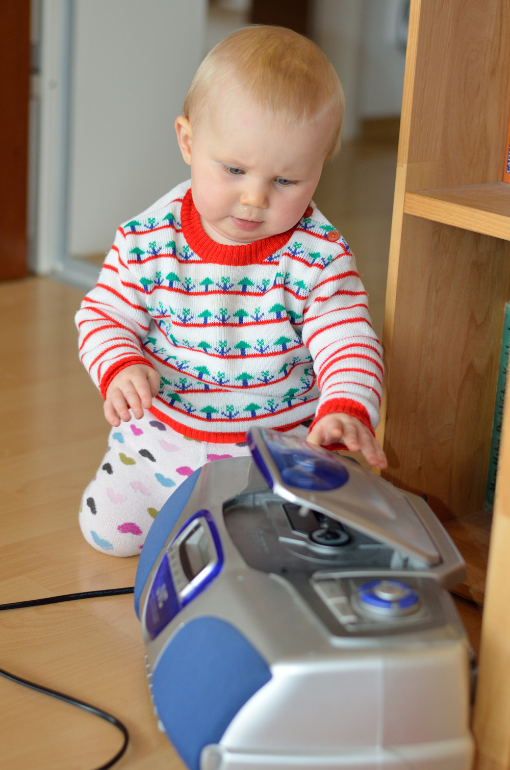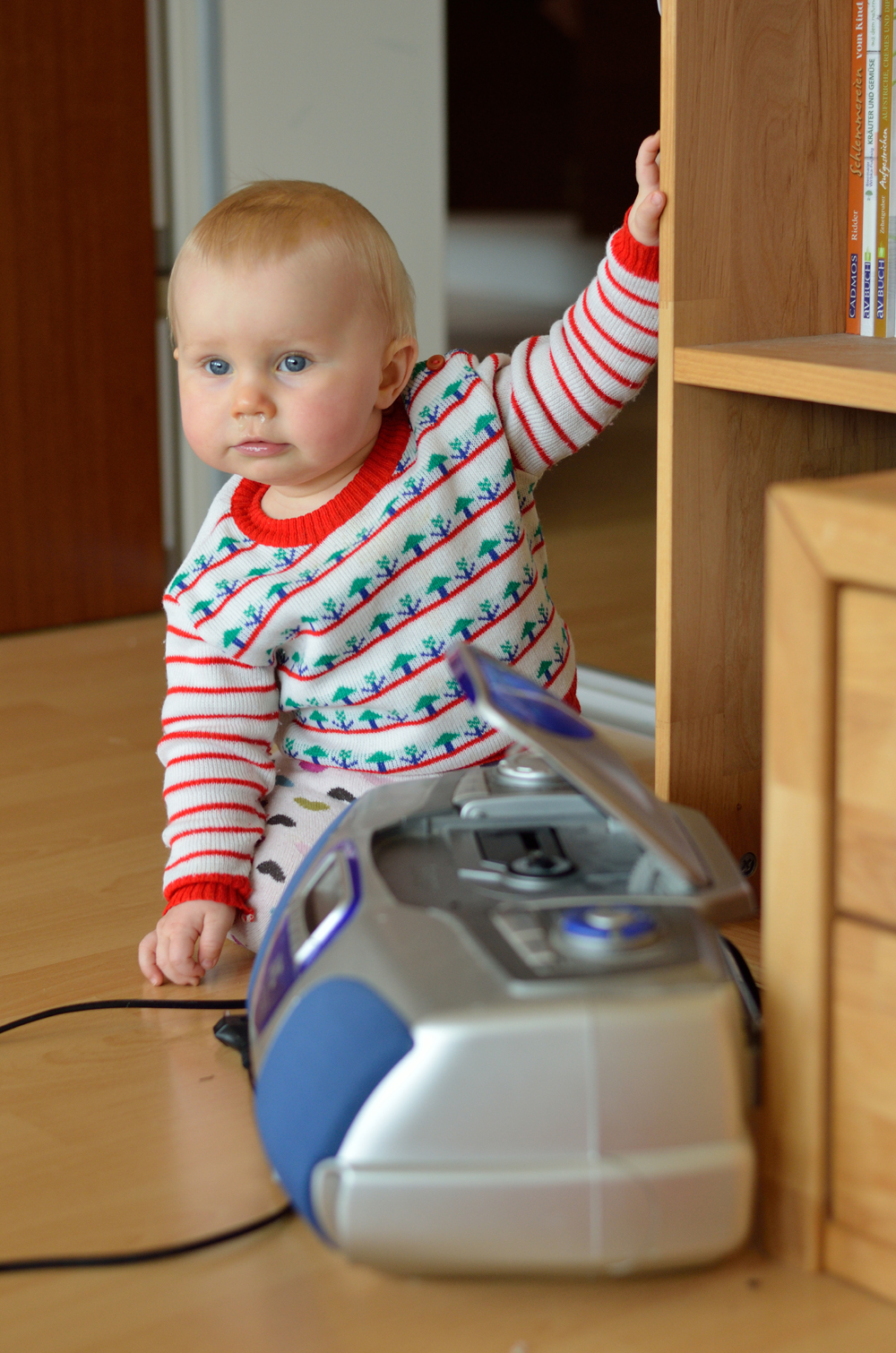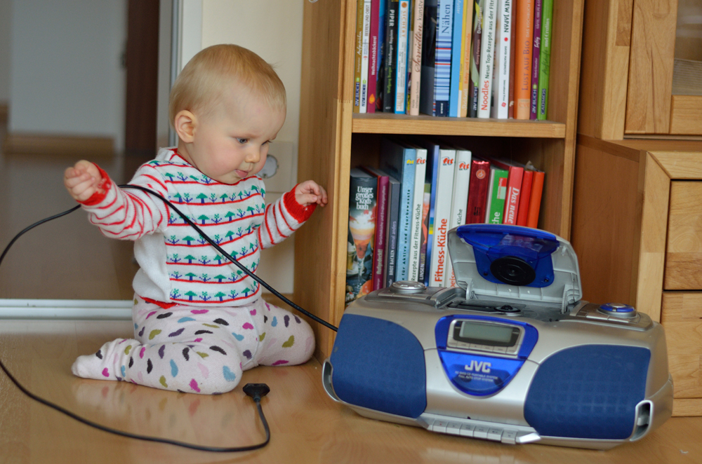 Johanna findet das Radion äußerst spannend und schafft es sogar den CD-Player aufzumachen. Auch das Kabel hat es ihr angetan.