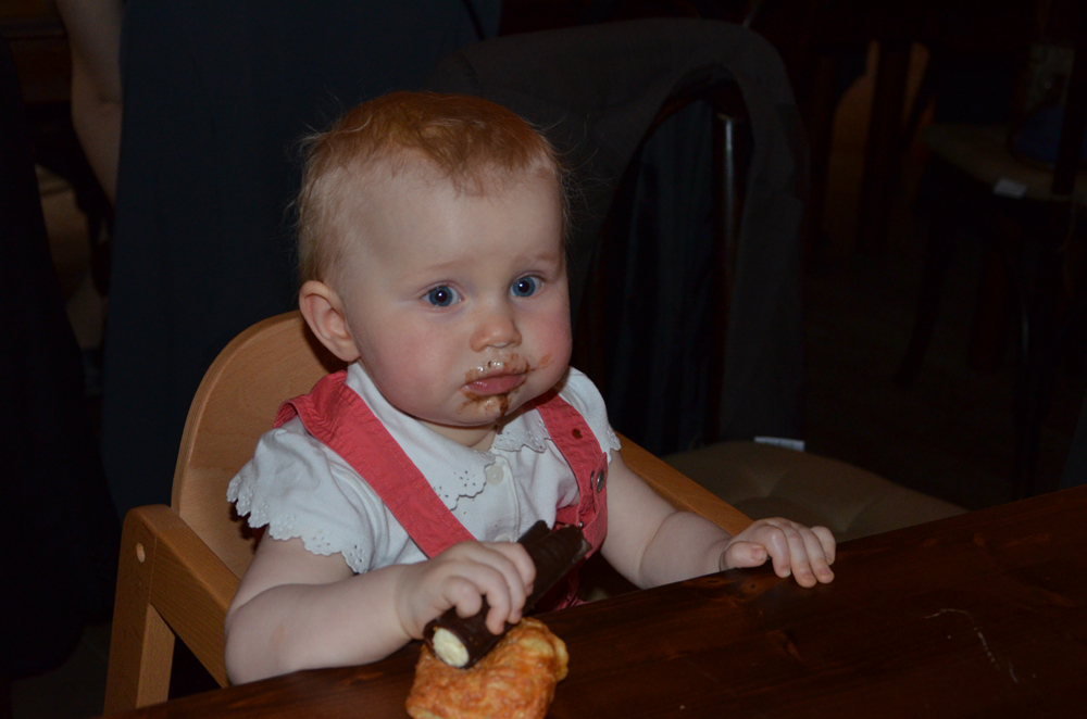 Heute waren wir mit Johanna zu der Hochzeit von Papas Kollegen eingeladen. Fast unbemerkt stiebitzte sich Johanna da etwas von Mamas Teller…