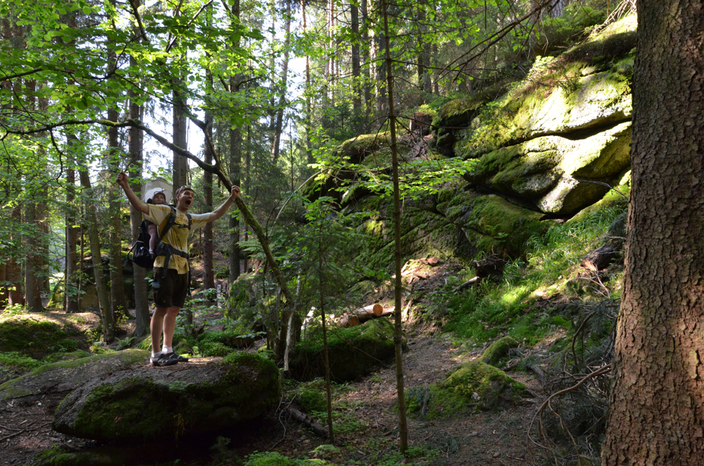 …kamen wir bei unserer heutigen Wanderung in Tirschenreuth. Das ganze entpuppte sich dann aber als harmlose, wenn auch interessante Felsformation im Wald. Johanna war erst noch voll dabei, döste dann aber irgendwann selig im Wanderrucksack ein. Mitten im Wald stießen wir dann auch noch auf eine Kaolingrube sowie allerlei interessantes Getier.