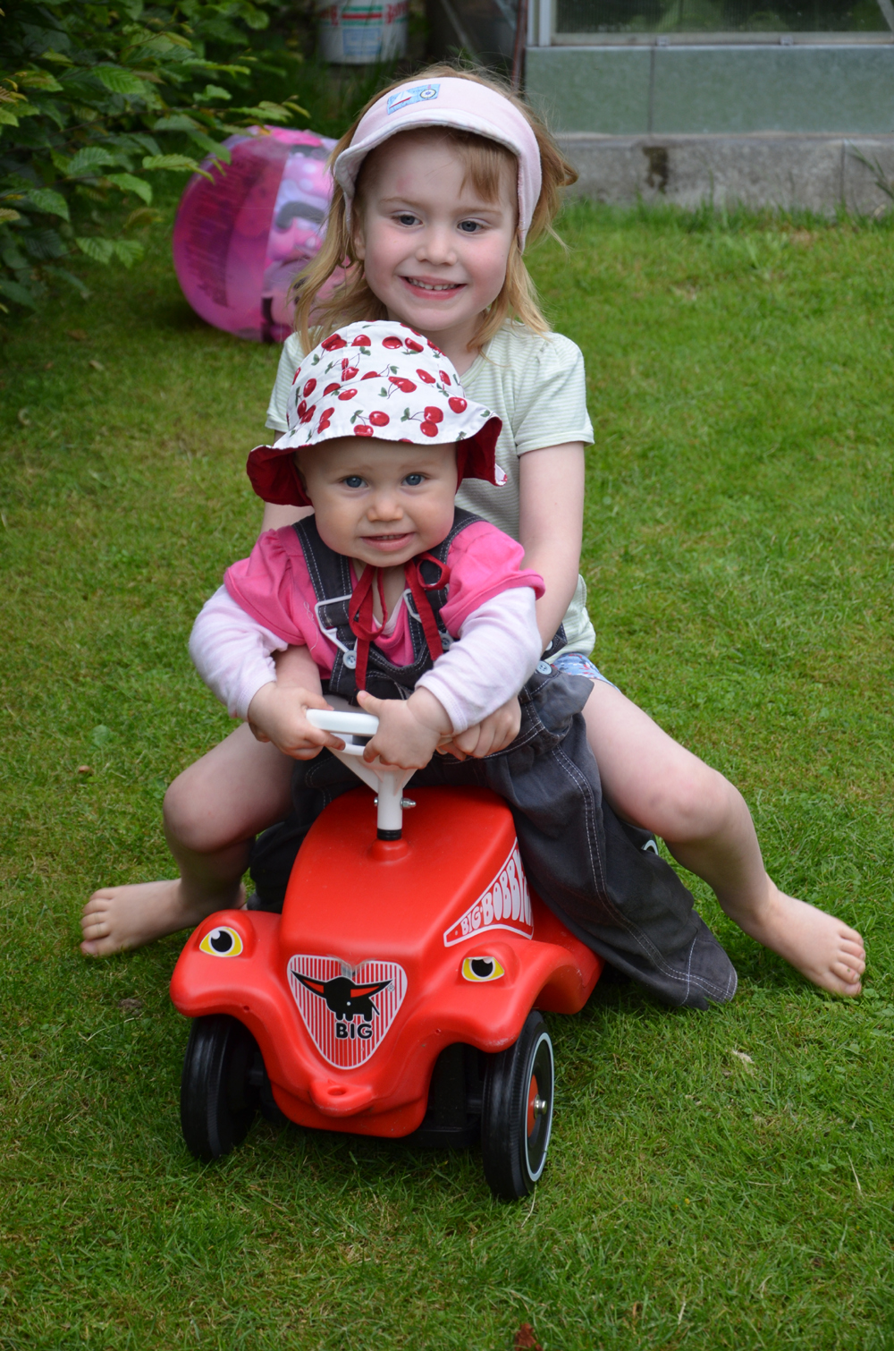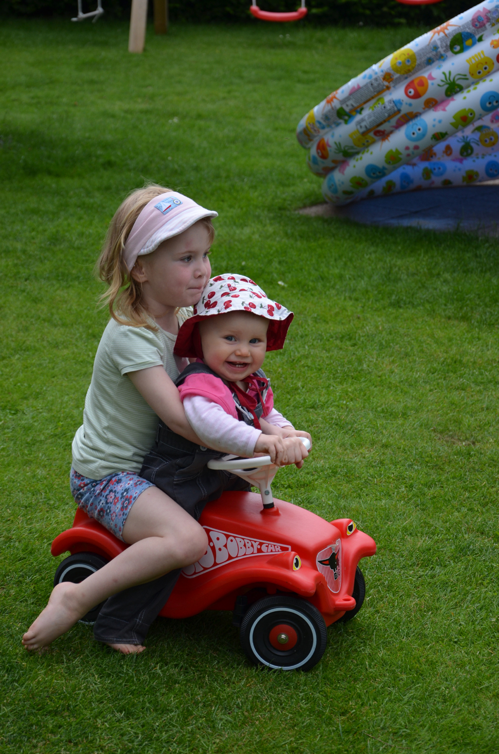 Zu zweit düsten unsere Mädels heute im Garten mit dem Bobby Car herum. Den beiden hat es sichtlich Spaß gemacht!