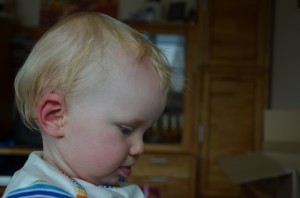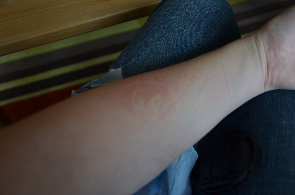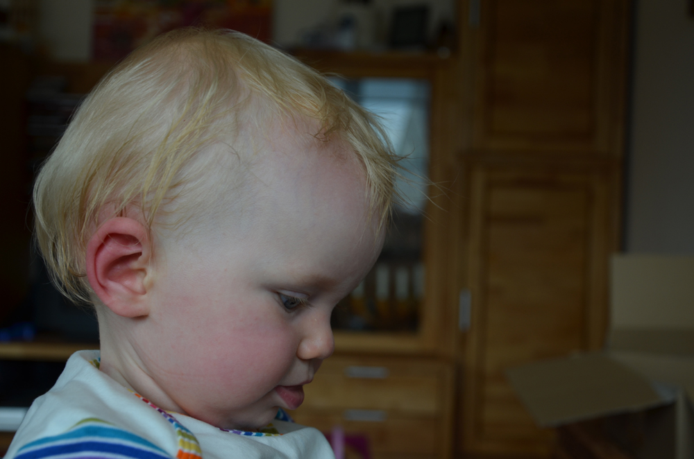 Heute ist Johanna mal wieder direkt an der Milchbar eingeschlafen. Abgefüllt mit süßer Milch schlief Putzikuss und lag dabei eine ganze Weile regungslos auf Mamas Arm. Auf diesem war am Ende ein deutlicher Abdruck zu erkennen - wovon, das kann man an Johanna auf dem zweiten Bild gut erkennen.