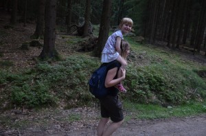 Um dem ganzen dann auch noch für den Rest der Familie etwas abzugewinnen, wanderten wir im Anschluss noch eine Runde den “Friedrich- Nietzsche- Wanderweg” in der Nähe. Nicht alle Familienmitglieder haben diese Runde bis zum Ende aktiv mitgestaltet. Müde und geschafft waren am Ende alle. Nach einem Abendbrot im Abendrot brachte Mama dann ihre wertvolle Fracht nachhause – Papa und die Kinder nahm sie natürlich auch mit…