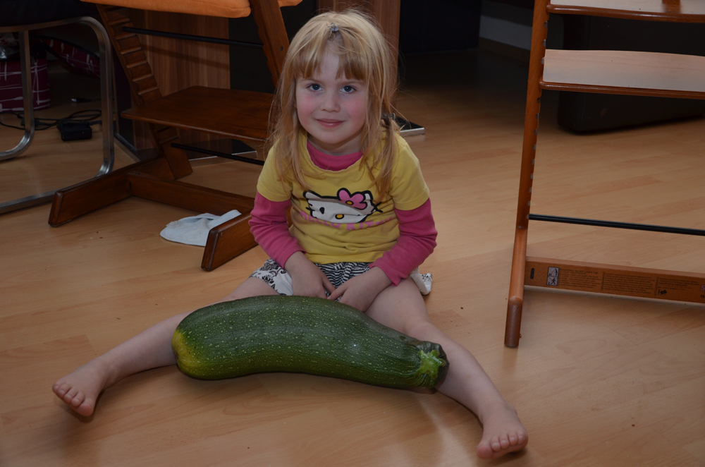 Unsere diesjährige Zucchiniernte fiel erschreckend gut aus. Exemplare wie dieses haben wir fast ein bisschen zu oft geerntet – so 20 mal oder mehr…
