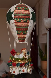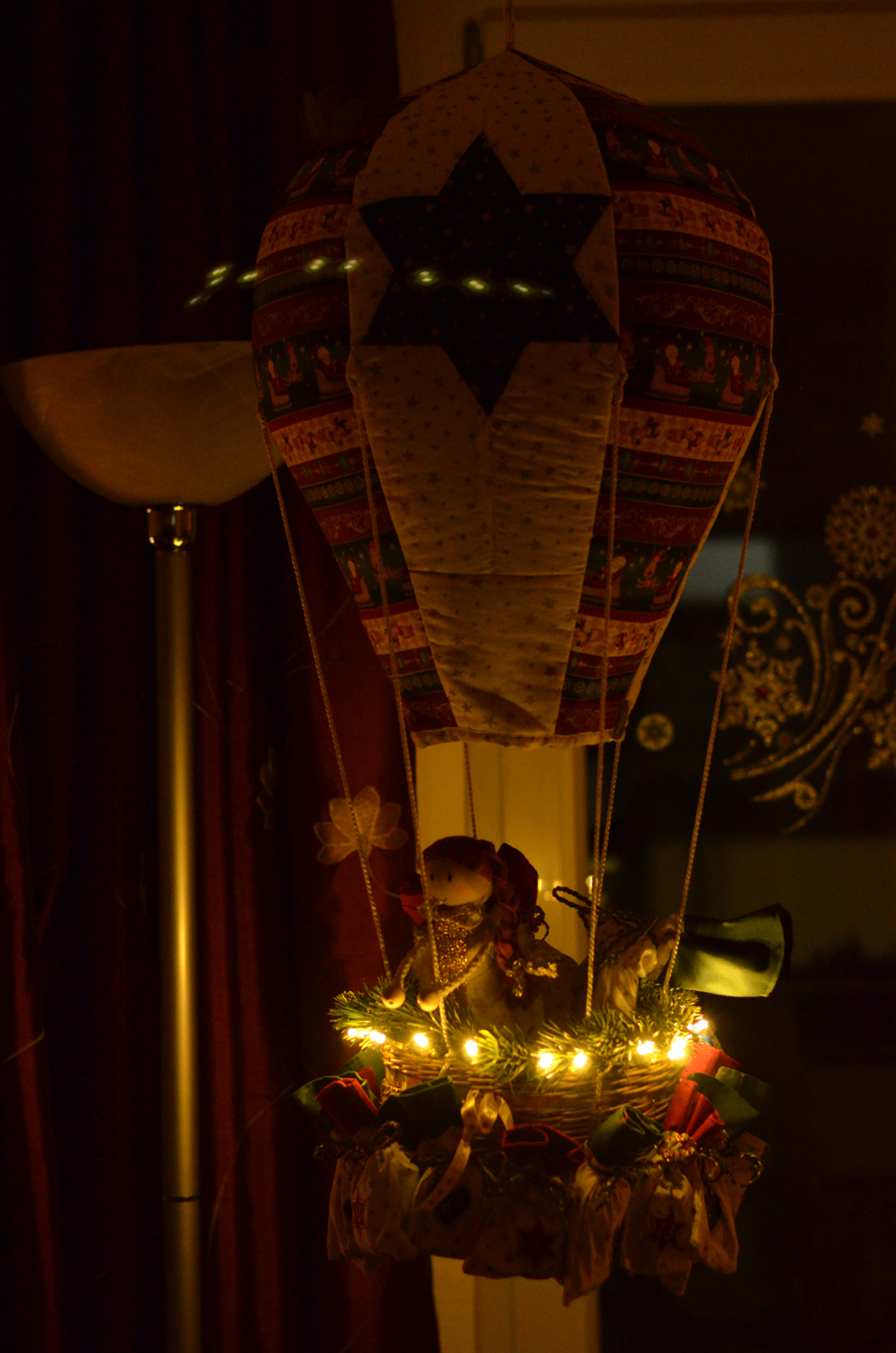 Nach den einen oder anderen arbeitsreichen Stunden, Wochen oder auch Monaten, ist er tatsächlich pünktlich fertig geworden: Silvias selbstgefertigter Adventskalender im Heißluftballondesign. Voll behangen mit durchnummerierten Ballastsäcken wird er nun jeden Tag um eine Kleinigkeit erleichtert. Jasmin ist begeistert und freut sich schon auch morgen.