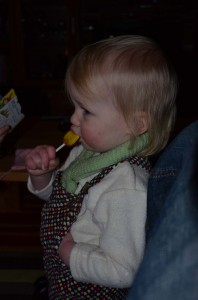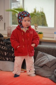 Wie ein kleiner Napoleon steht Johanna derzeit gern mal da. Wenn sie gerade keine Jacke mit Taschen an hat, dann werden die Händchen eben in der Latzhose versenkt.