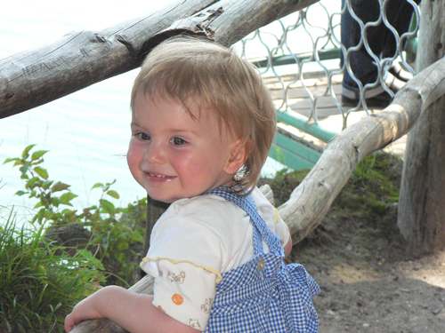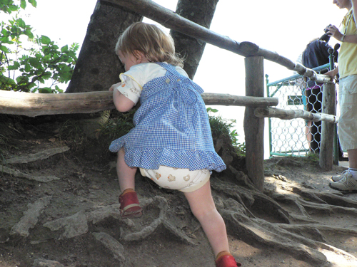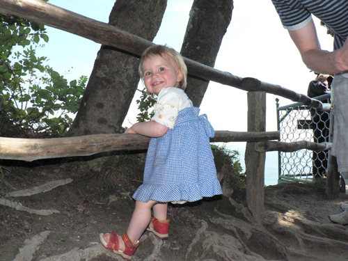 Kaum kann Jasmin halbwegs sicher laufen, versucht sie sich auch schon fleißig an der Kletterei. Wie hier bei unserem Ausflug an die Kreidefelsen.