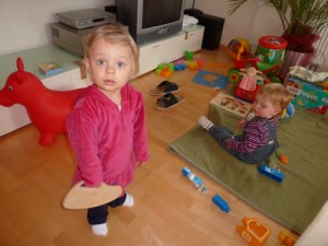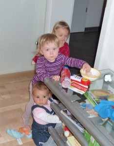 Nach dem Schönheitsschlaf zum Mittag haben wir heute einen Ausflug zu Isabeau und ihren Eltern gemacht. Bei Kaffee und Kuchen war auch Marlene samt Mama und Papa mit von der Partie. Die so entstandene Rasselbande verstand sich erstaunlich gut und alle haben friedlich miteinander gespielt.
